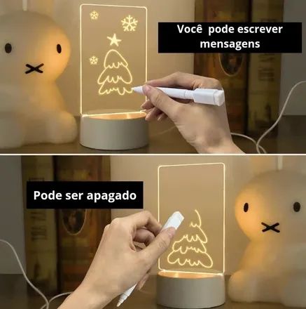 Seja bem-vindo(a) ao mundo da iluminação inovadora e criativa com a Luminária Lousa de Mesa com LED e Caneta para Escrever! Ideal para trazer mais estilo e praticidade para o seu espaço, esta luminária única combina a funcionalidade de uma lousa com a suave iluminação do LED, permitindo que você solte a sua criatividade e ilumine o ambiente de forma única. Seja na sua mesa de trabalho, escritório, quarto ou sala, esta luminária inovadora é a escolha perfeita para quem busca um toque especial na decoração. ✨